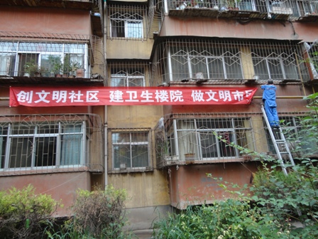 我司配合市委市政府針對“五城聯(lián)創(chuàng)”在小區(qū)內張掛宣傳橫幅
